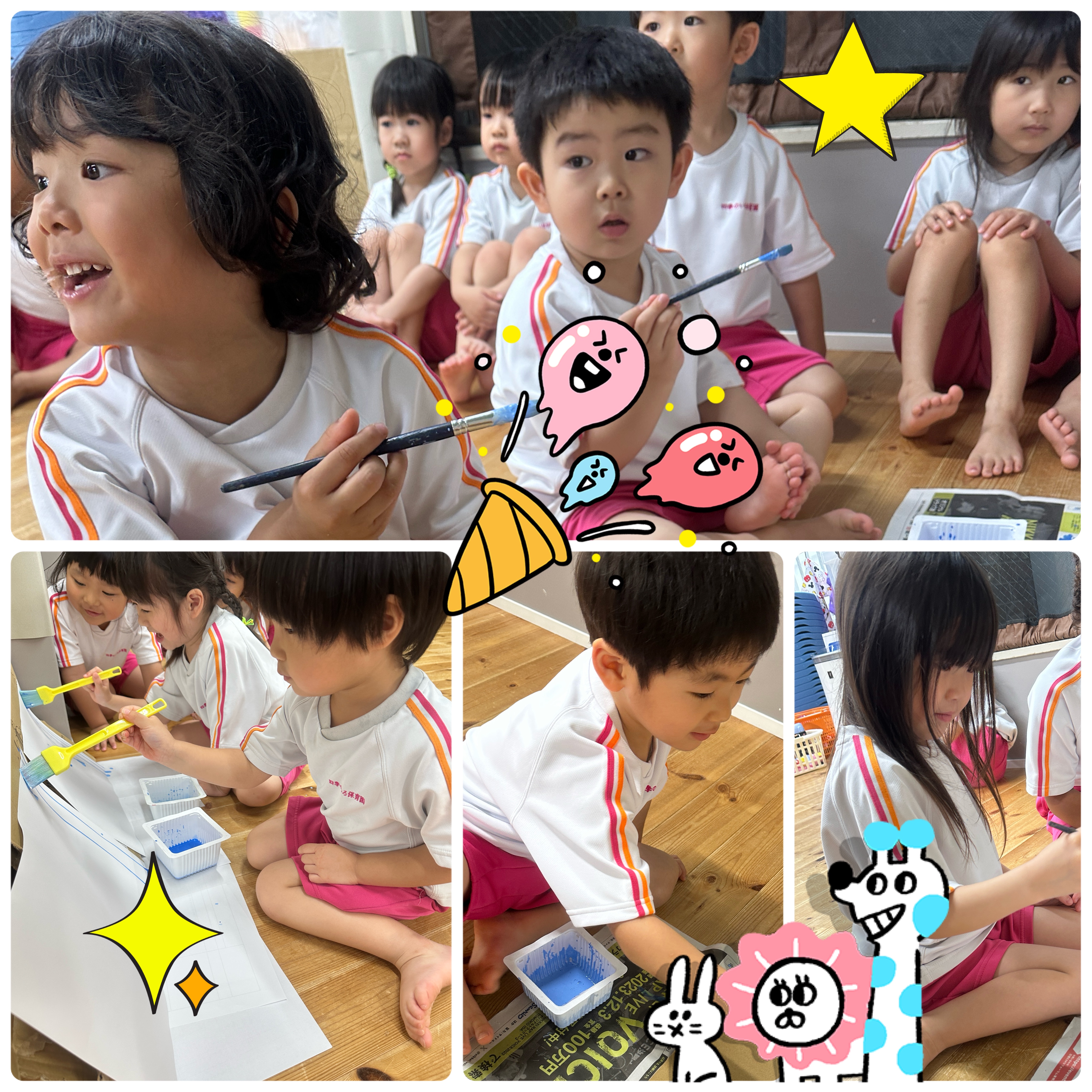 先生の説明をしっかり聞いて、筆を使って画用紙に絵を描いていきます🌟