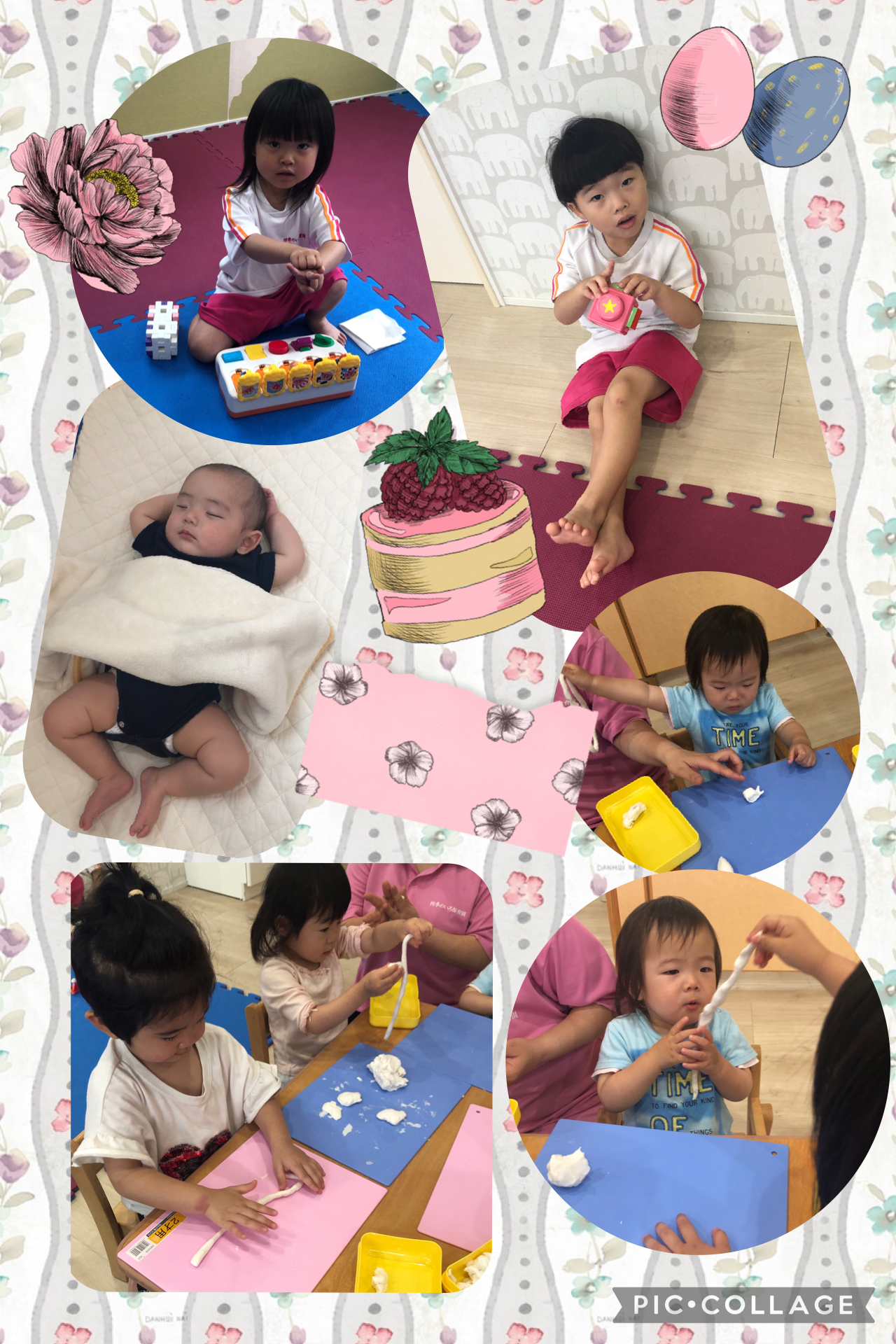 粘土、ぬりえ、ブロック遊びをしたりと、