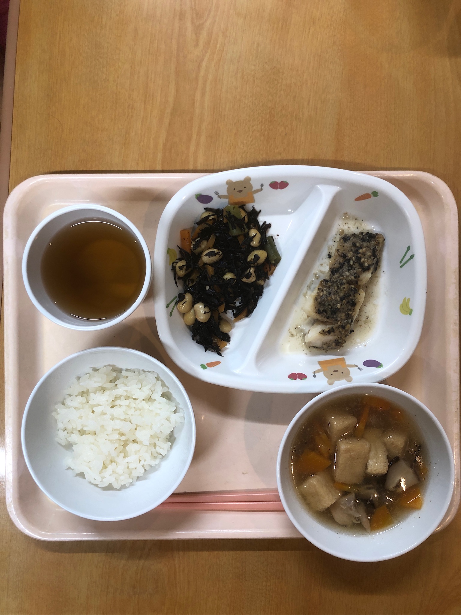 ご飯 ホキの胡麻味噌焼 大豆とひじきの煮物 のっぺい汁