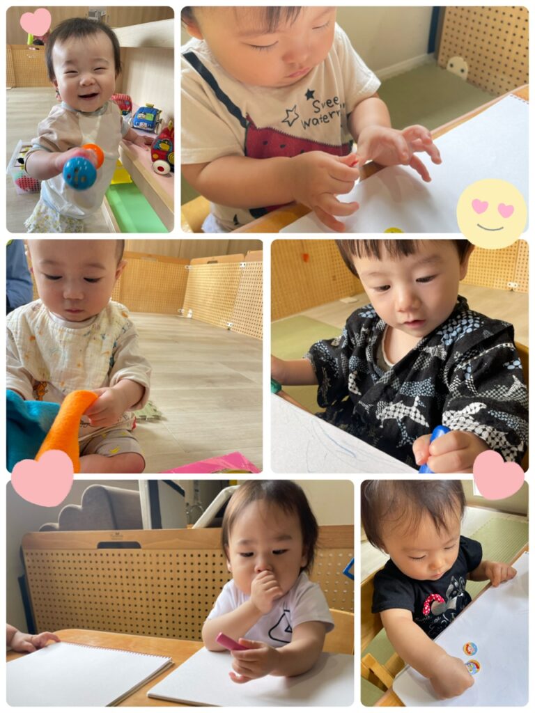 おひさま・ほし組さんは、お絵描きやシール貼りをして遊びました!!みんな夢中になっていましたよ★彡