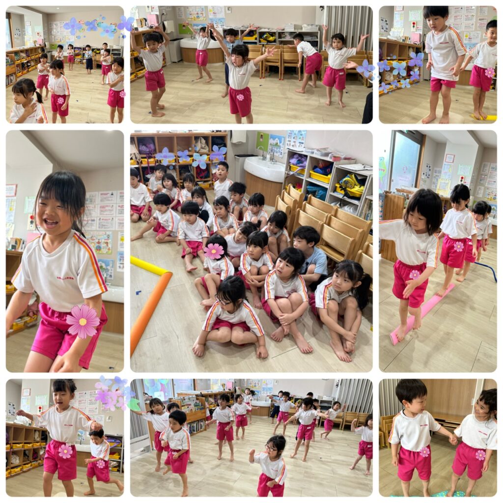 以上児さんは、ダンスやサーキット遊びをしました!!子どもたちの最近のお気に入りのダンスは「ガッツだせ!」と「はい、よろこんで」です✨✨みんな踊りがとっても上手です☺️サーキット遊びでは、バランスをとりながら平均台を渡ったり、跳び箱をジャンプしたりして体を沢山動かしました!!