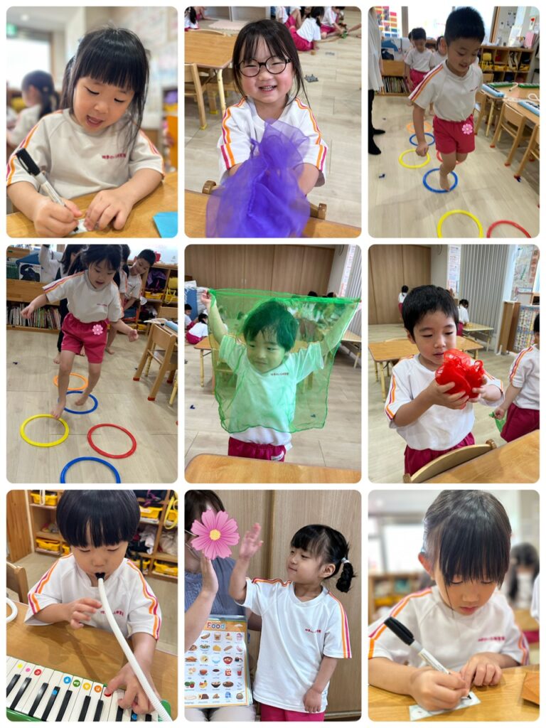 以上児さんは英語教室と音楽教室の日でした!!英語教室では、自分の好きな食べ物や果物を前に出て大きな声で言うことができました✨✨