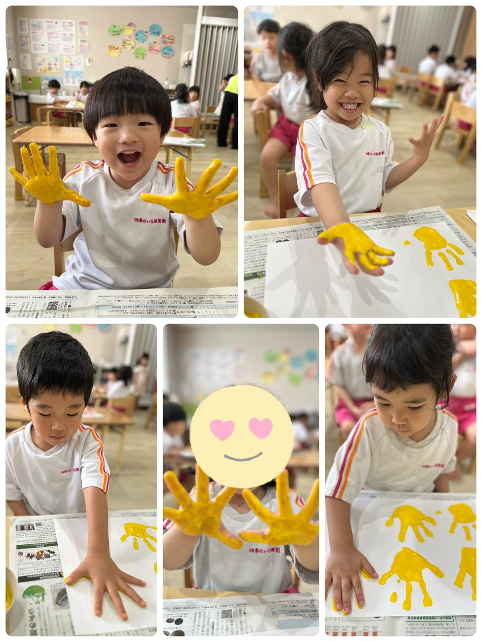 以上児さんは、夏祭り製作のため手形をとりました👐
