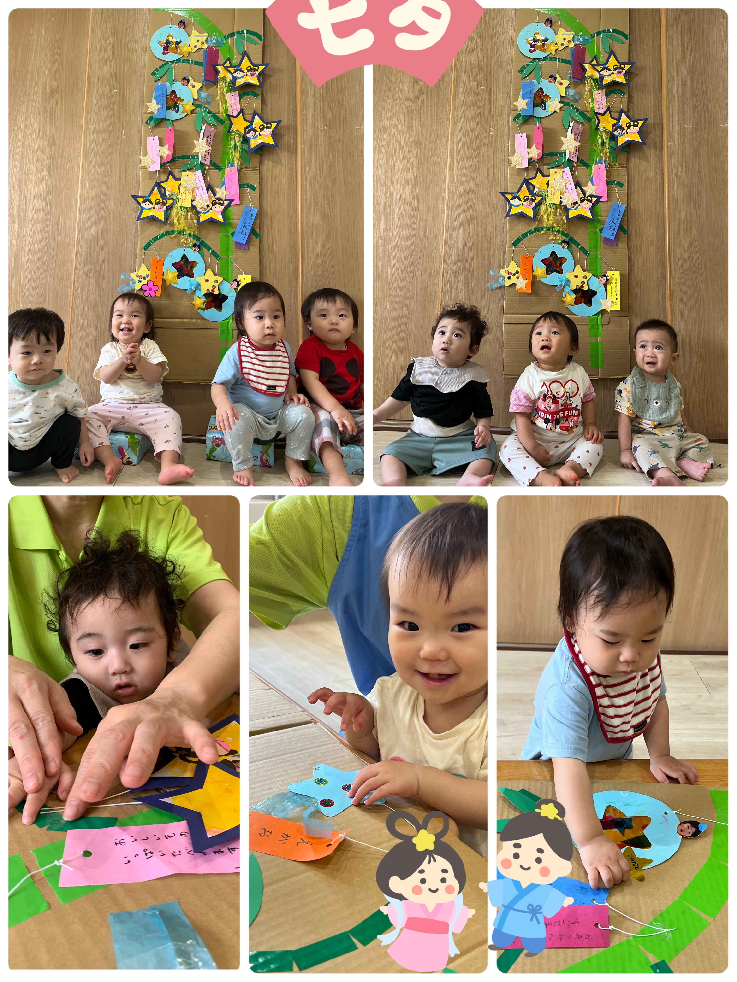 みんなで七夕の歌を歌ったり、自分たちで作った短冊や笹飾りを飾り付けをしました(^^♪