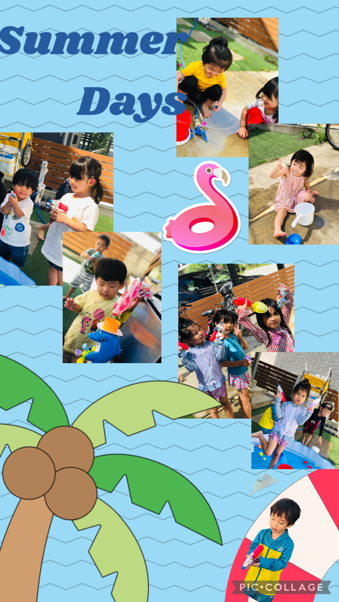 以上児組さんは戦隊モノなどになりきって水鉄砲で戦っていましたよ 🍐