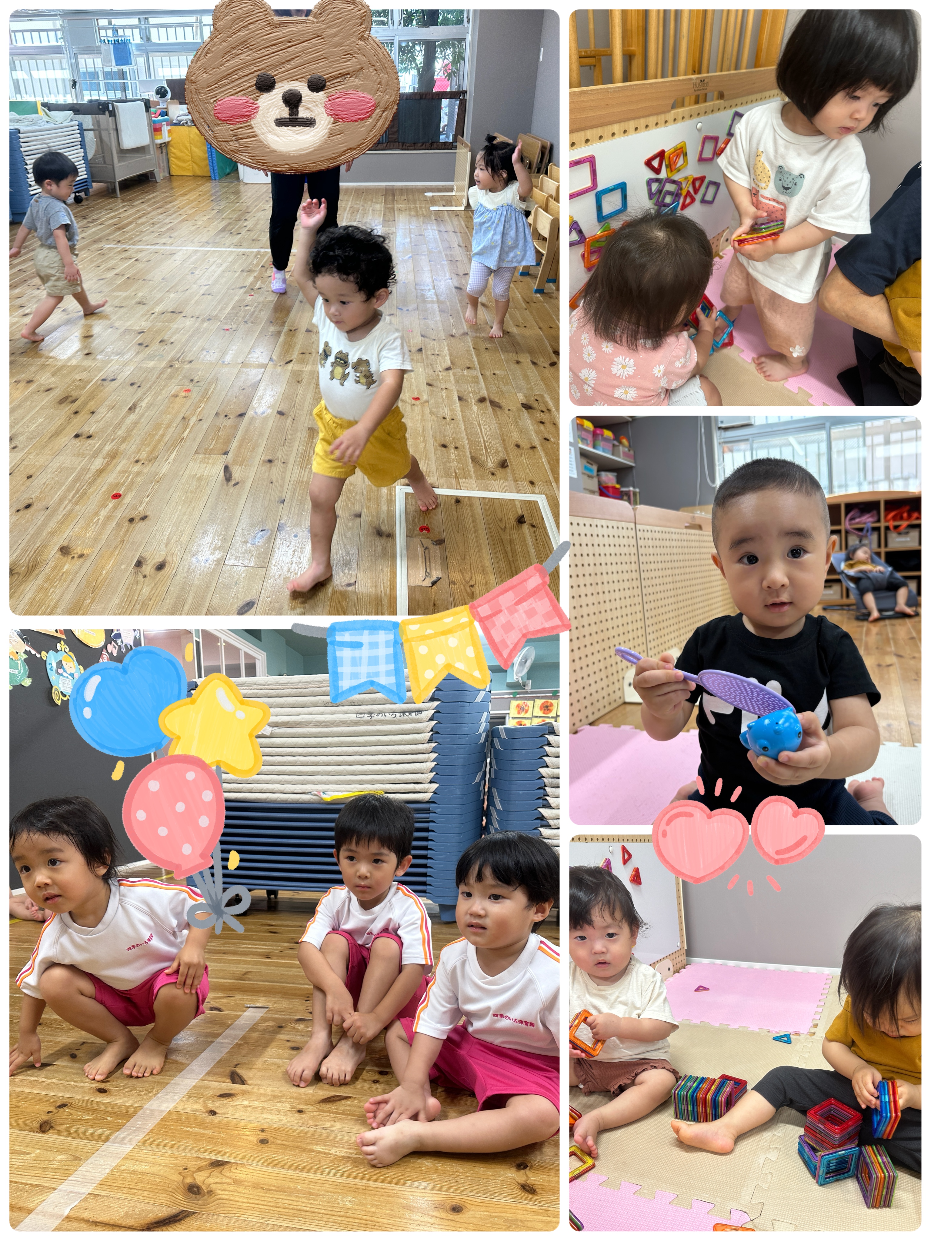 ひよこ組、りす組さんはお水を触って遊んだり、マグネットおもちゃをくっつけていろんな形をつくったりしました。