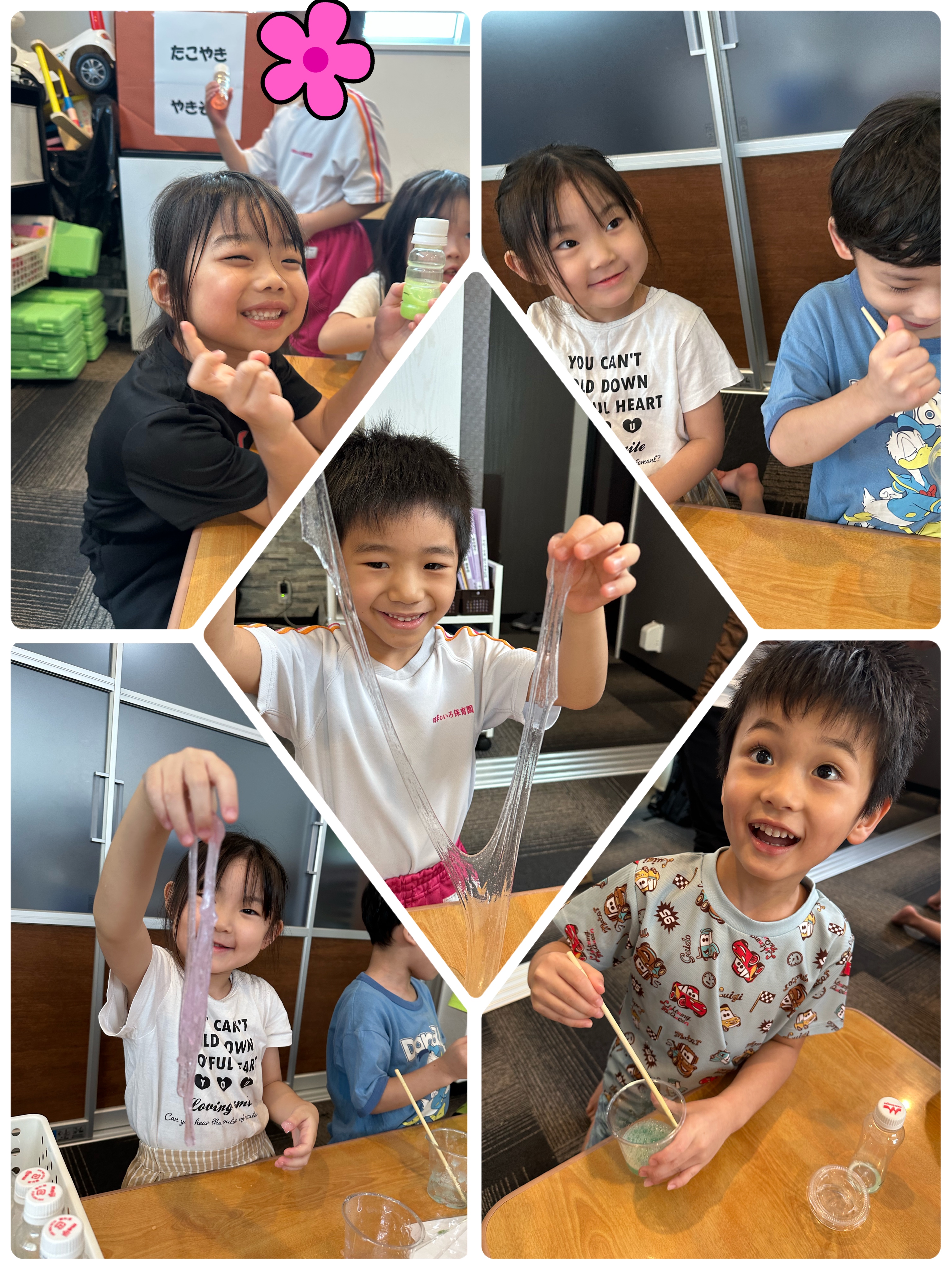 スライム作りでは、自分で材料を混ぜて作り、スライムの感触に大喜びのみんな🌟