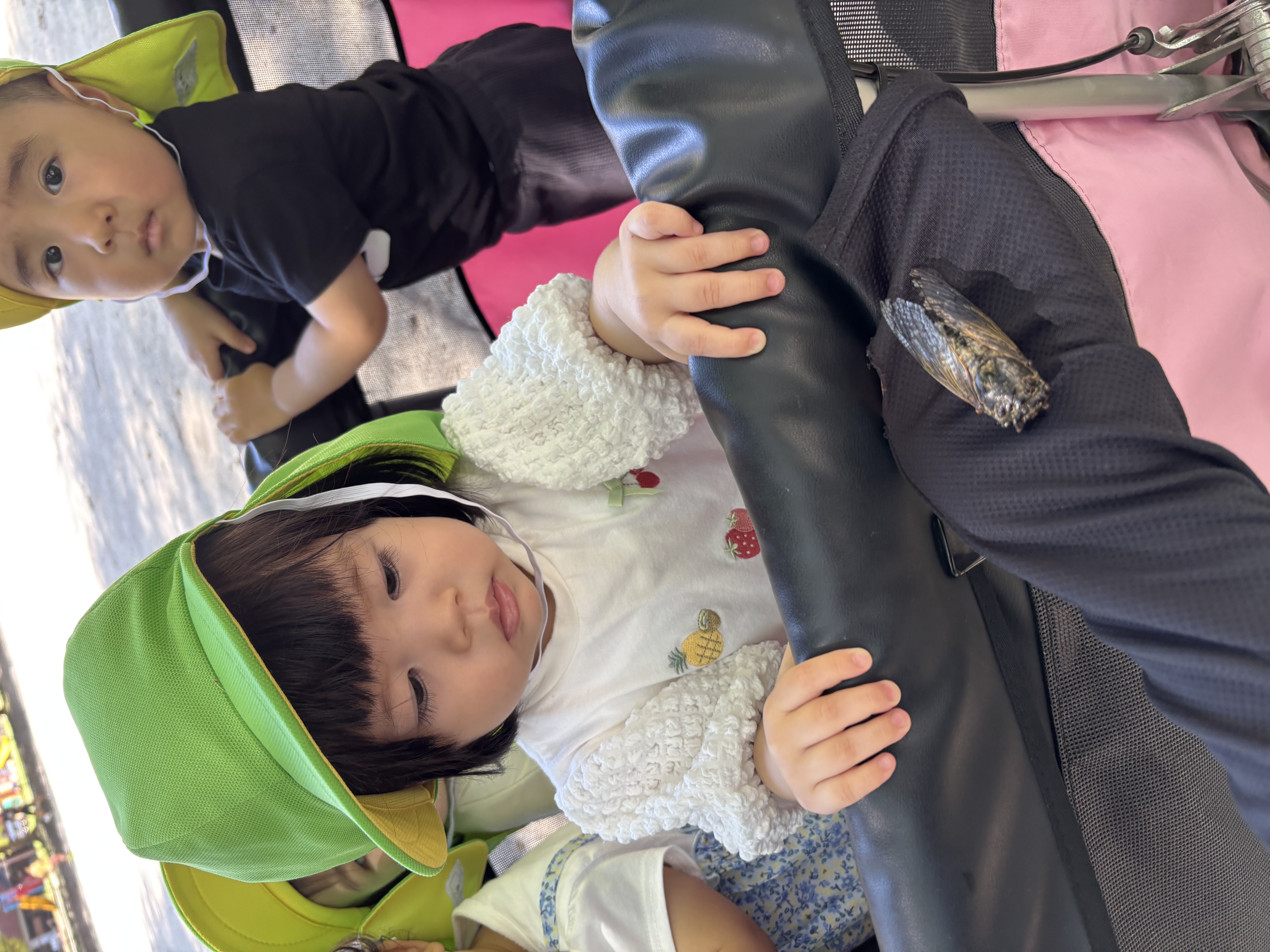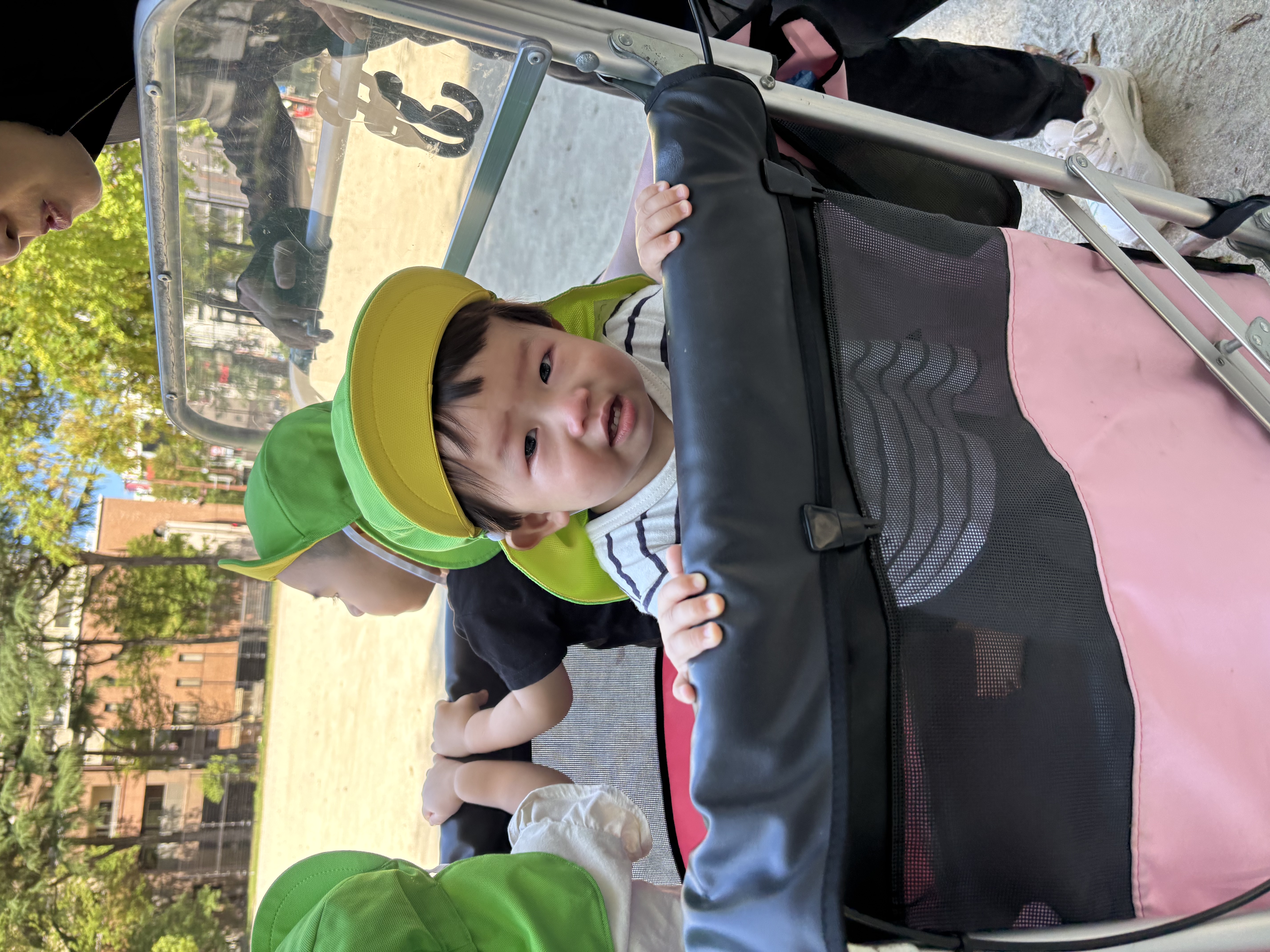 未満児クラスのお友だちは、全員カートに乗り、浜の町公園までお散歩へ…♡