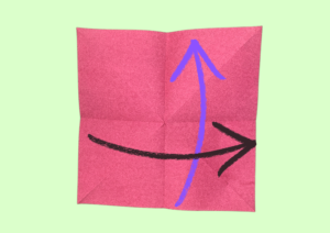 ① まず折り紙の角を合わせて、対角線にそれぞれ折ります。