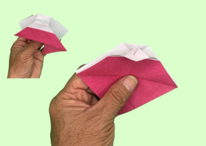 ⑫ ⑪で折った部分を閉じて折り尾の部分を作ります。尾の部分を谷折りにしましょう。