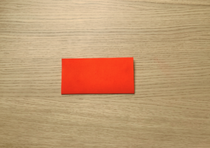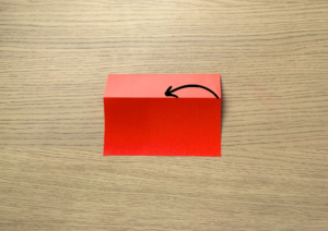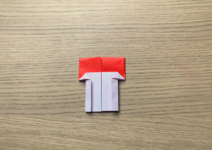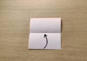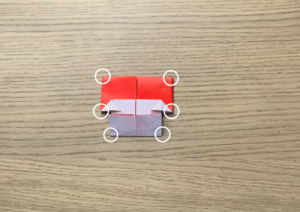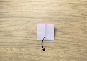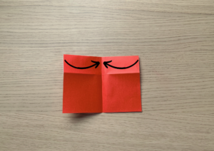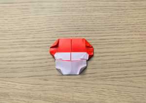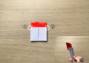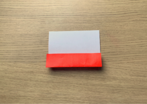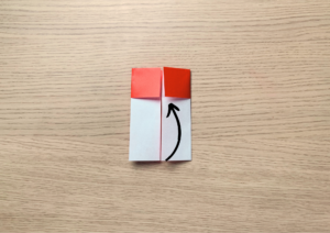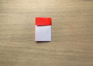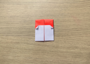 ⑥ 色のついている折り紙の底辺まで白い部分を折り曲げ、さらに折り曲げた部分を1cm程折ります。
