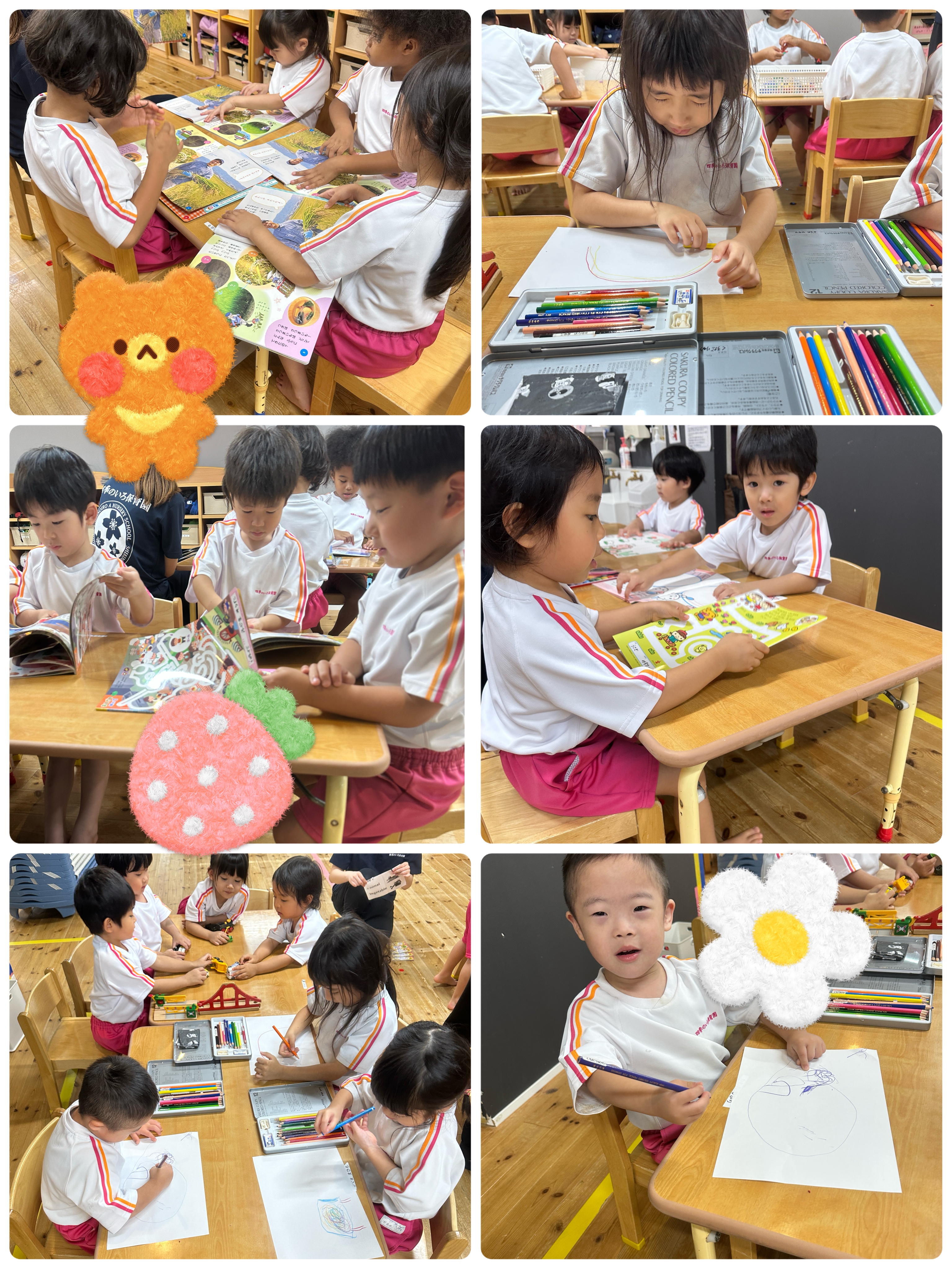 先生に月刊絵本を読んでもらったり、お絵描きや塗り絵を楽しみました🥰