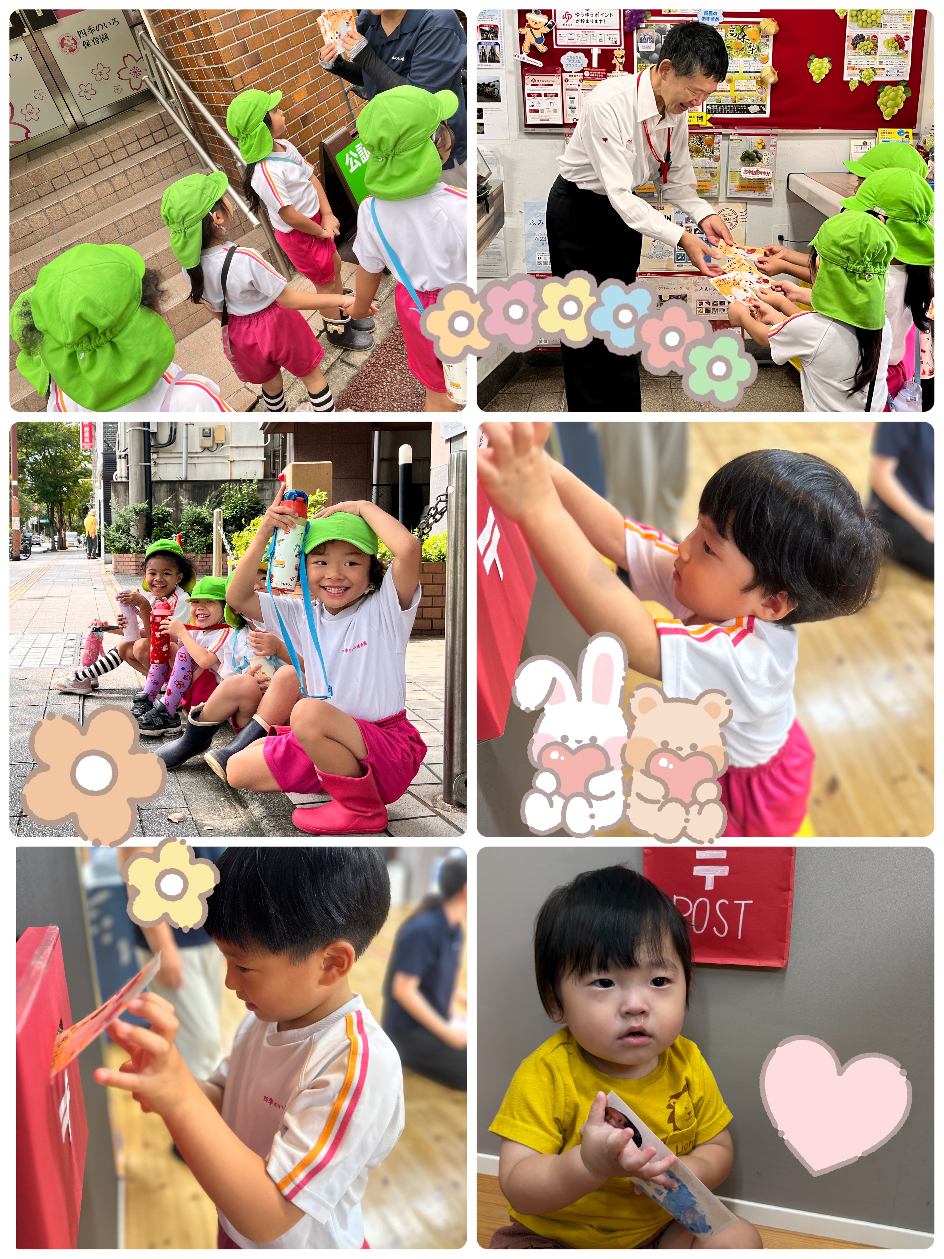 ひよこ組・りす組・ねずみ組・うさぎ組・ぱんだ組のお友だちは、先生が作ってくれたポストにはがきを投函する疑似体験を行いました!