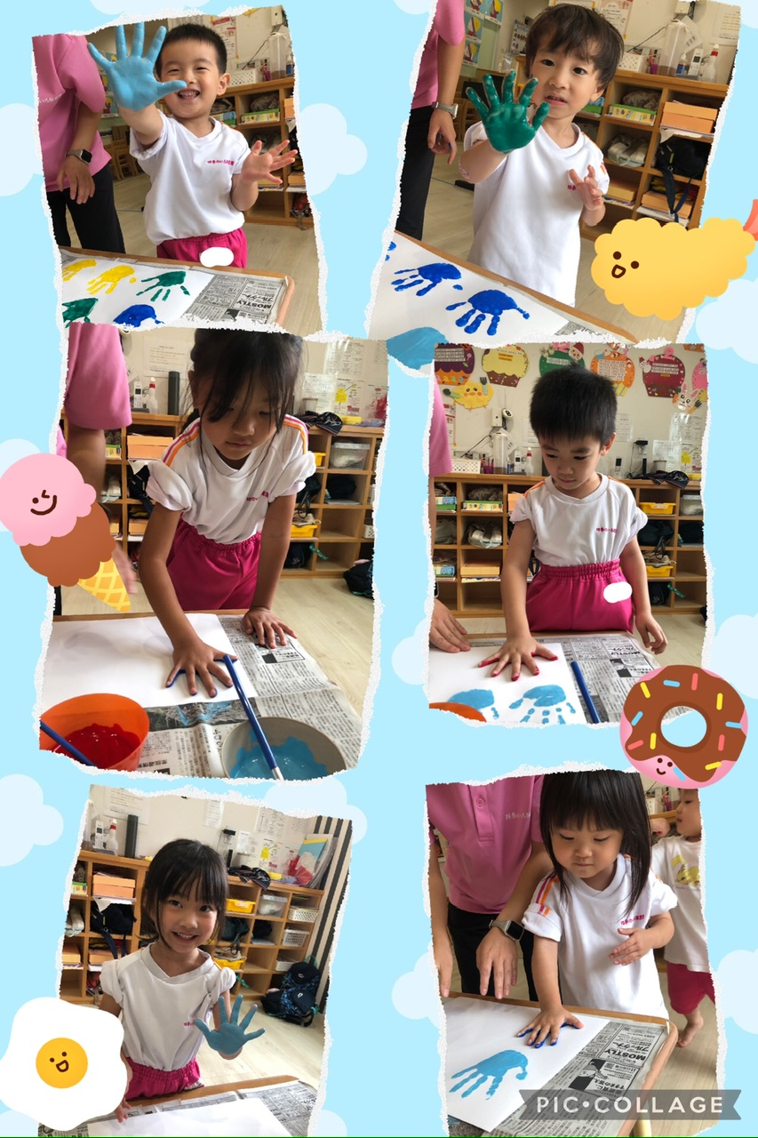 今日の以上児さんたちはみんなで制作!絵の具を使って活動しました🎨