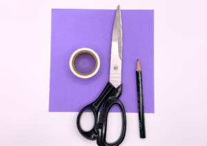 ① 折り紙とはさみと鉛筆とマスキングテープを準備します。