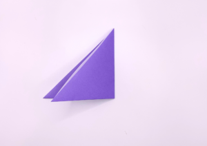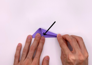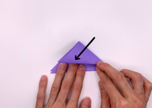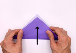 ③ 折り紙を上に向かって三角に折ります。