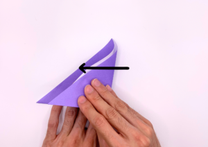 ⑥ 折り紙をさらに斜め左下に折ります。