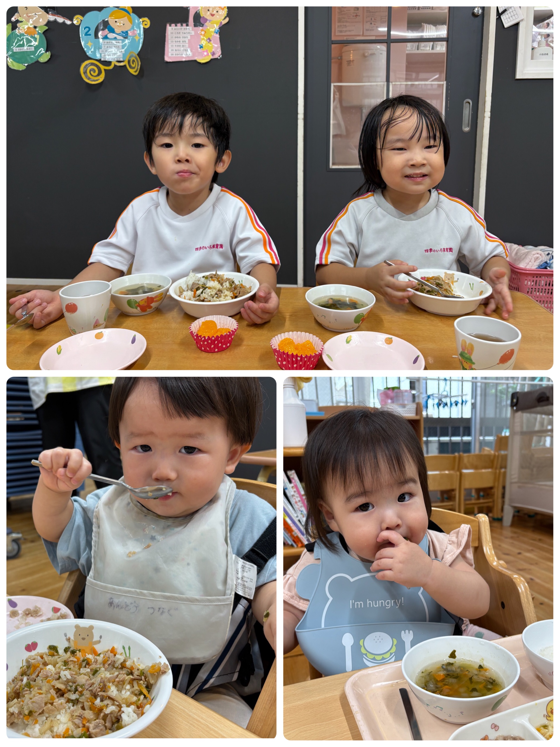 汗をいっぱいかいた後は、みんな大好きなお給食!🍚たくさん動いたので、大きなお口を開けてもりもり食べていましたよ!おかわりもたくさんしました!😋