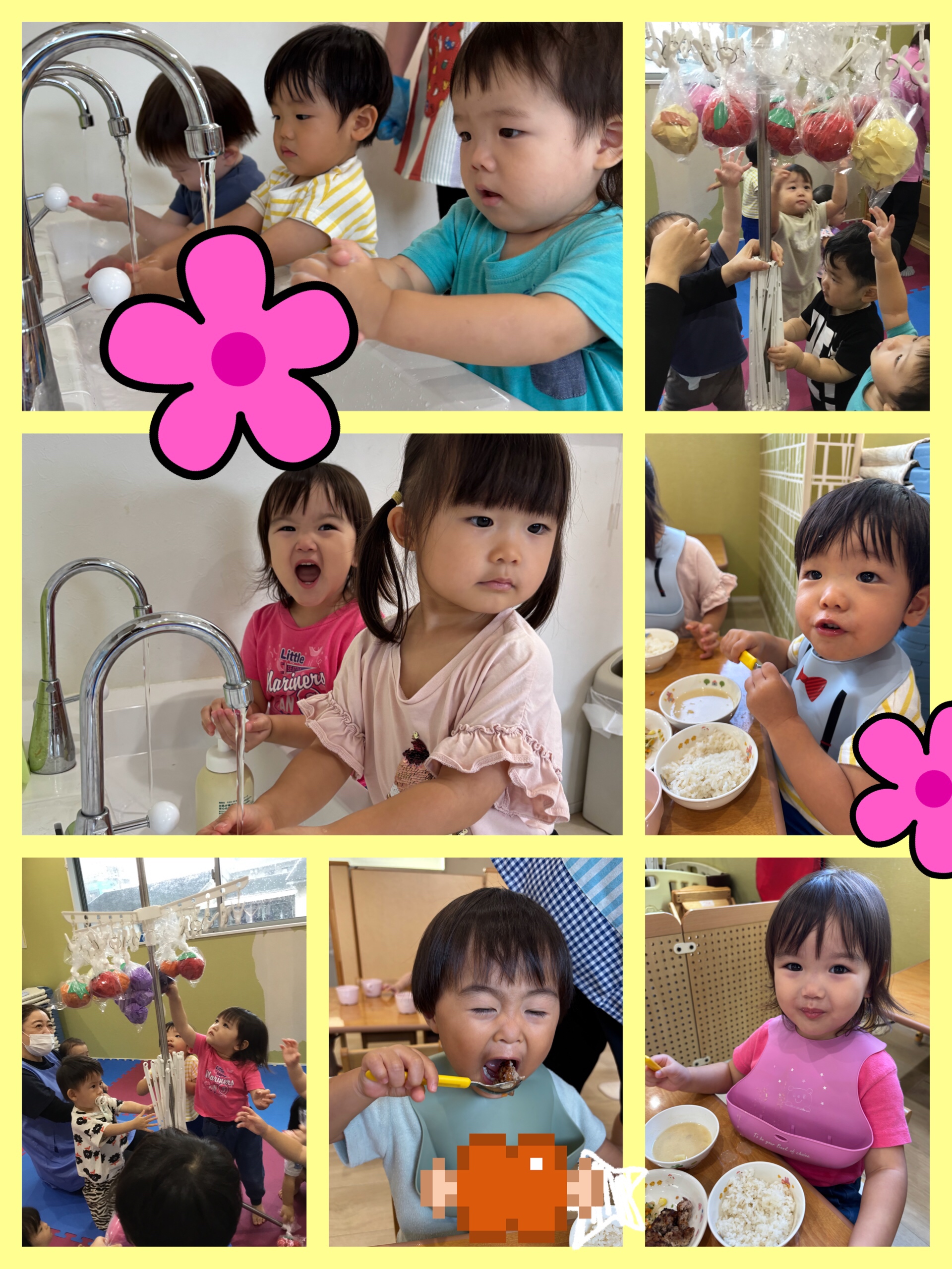 みんな、フルーツに興味津々で、背伸びやジャンプをしながら頑張っていました(*^^*)