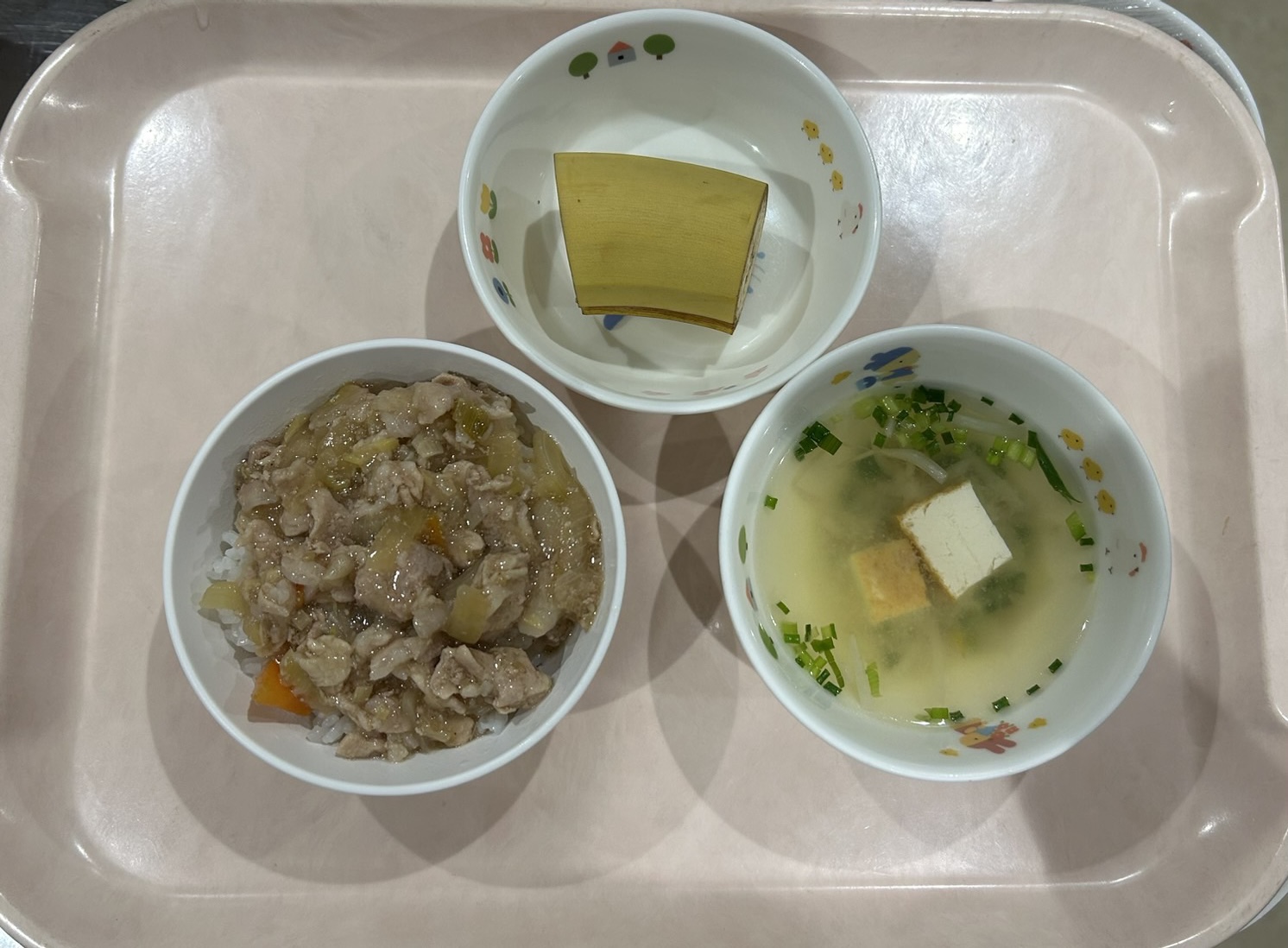 豚丼、みそ汁、バナナ