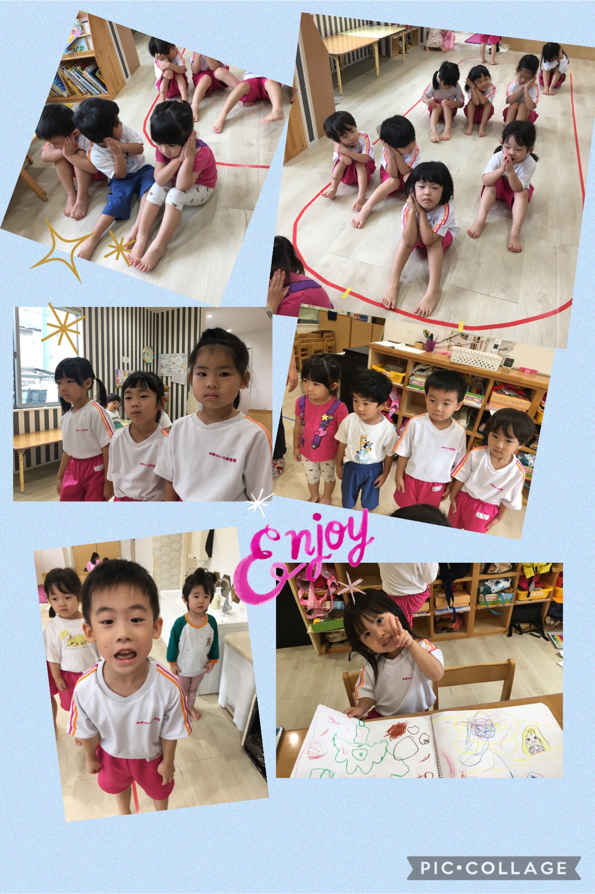 以上児さんの運動会の練習に参加する2歳児さん。1階は活気づいています!