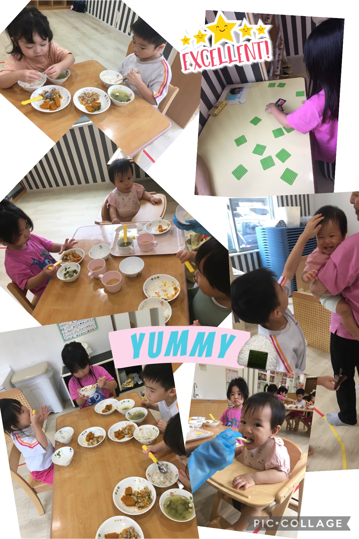沢山遊んだ後は給食をいっぱい食べましたよ😋