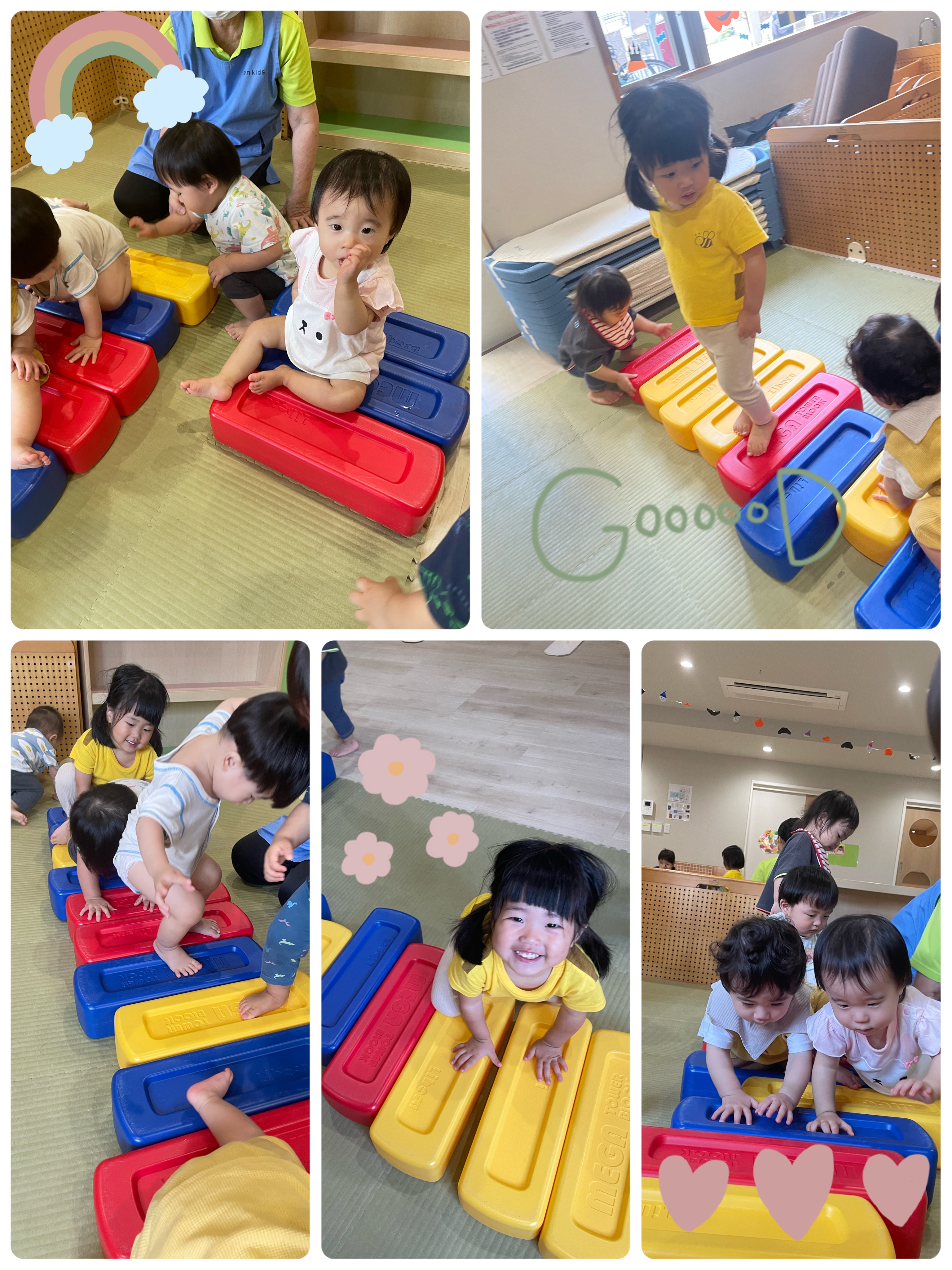 ほし組さんが並べてくれたブロックの上を一緒に登ったり渡ったり☺💕