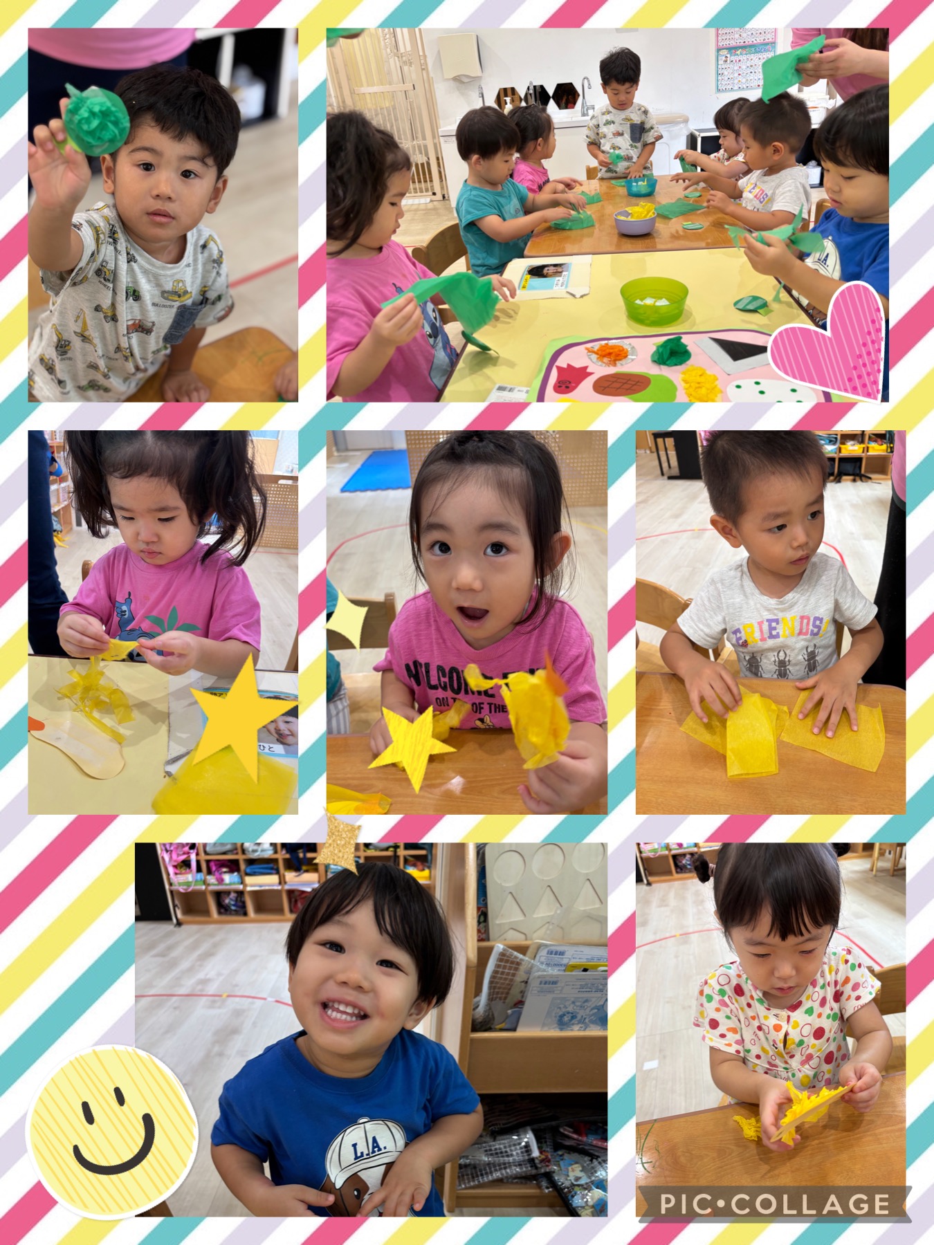 帽子を作ってもらい被って楽しむお友達にお友達と破って遊んだりと元気いっぱいです⭐️