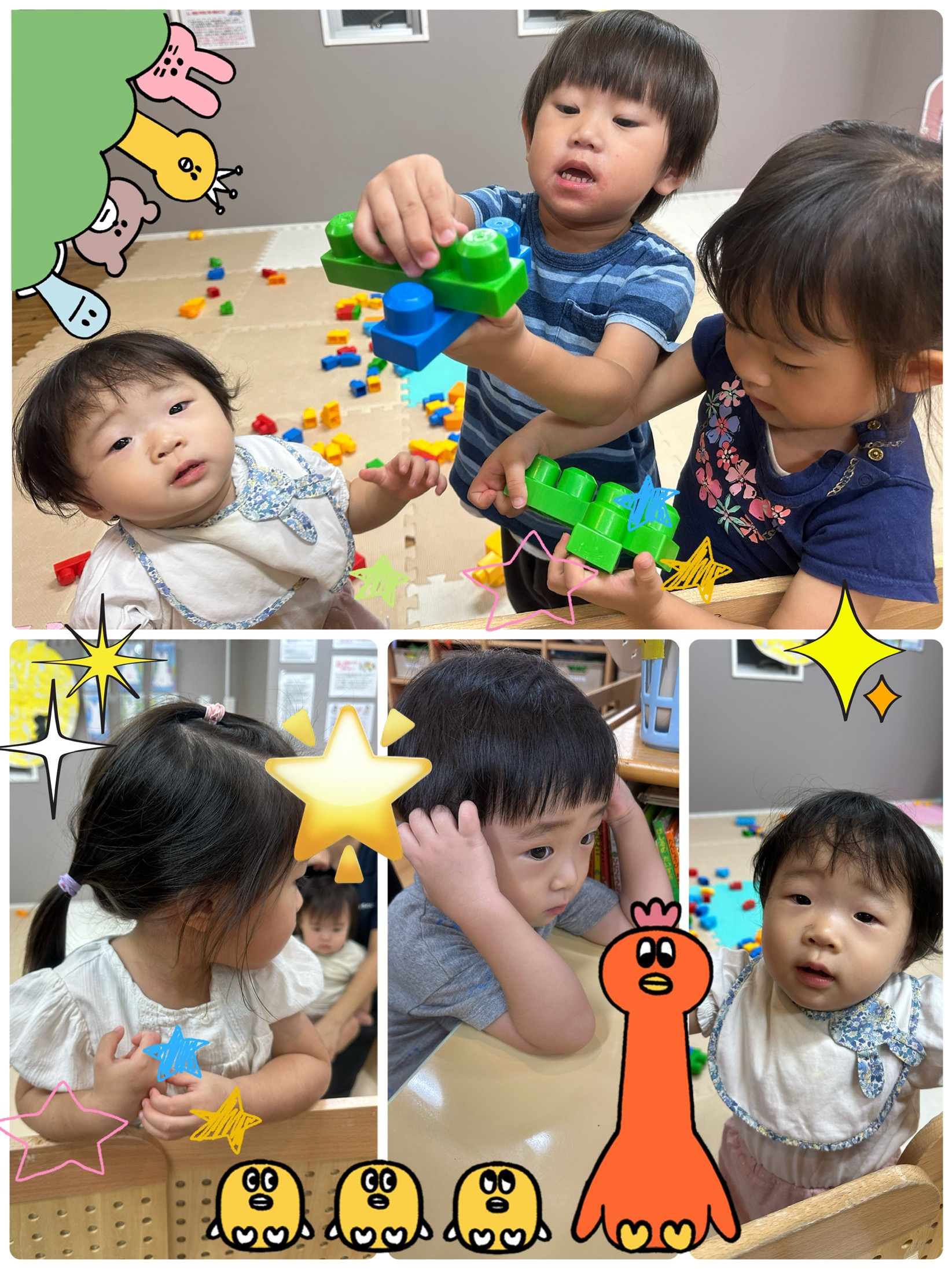 ひよこ組、りす組、ねずみ組さんは、お兄さんお姉さんの練習の風景をじ~っと見たり、ブロックで遊んだりしました!