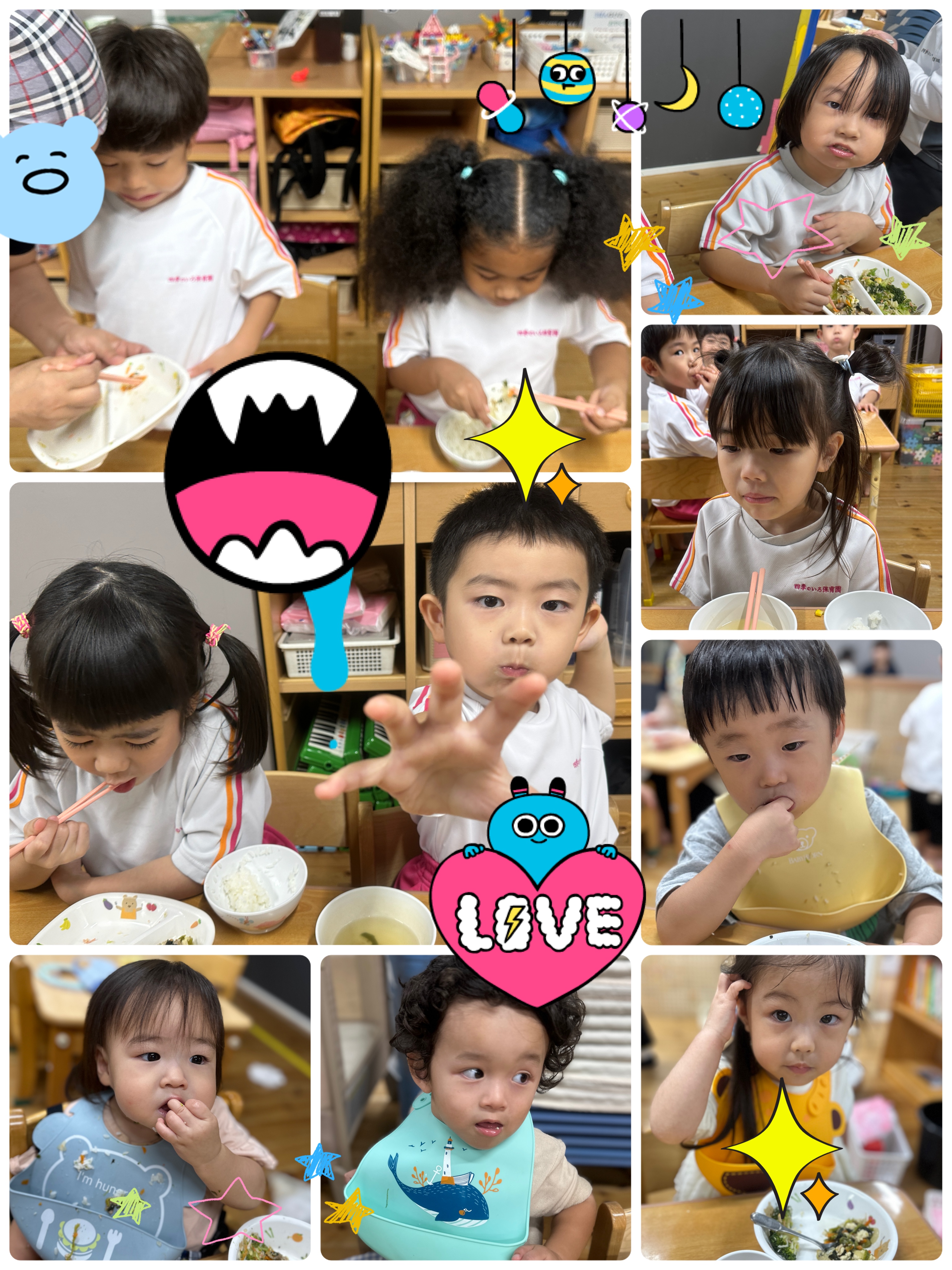 お化けの真似をするところでは、こわ~いおばけ😁と、お友だちと顔を合わせて笑顔いっぱい楽しみました。