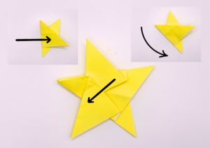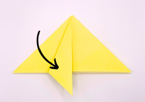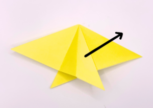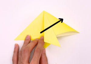 ⑩ 折り紙を矢印の方向に折り、傾け、矢印の方向に折ります。