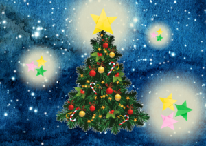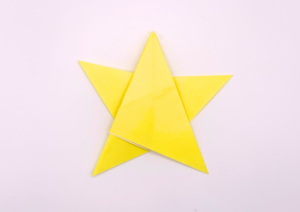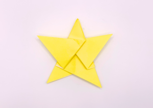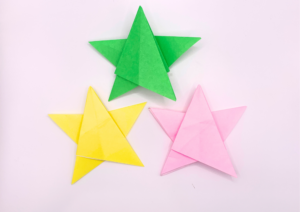 スティックキャンディに続いて星です。キラキラ光るお星さま。お星さまを折り紙で作ってみましょう。お星さまもツリーやリースに飾ってみましょう。