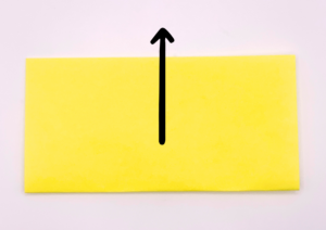 ⑨ 折り紙を矢印の方向に折り、折り目をつけ、折り目を目印に矢印の方向に折ります。