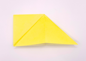 ⑥ 折り紙を矢印の方向に折り、ひっくり返し、矢印の方向に折ります。