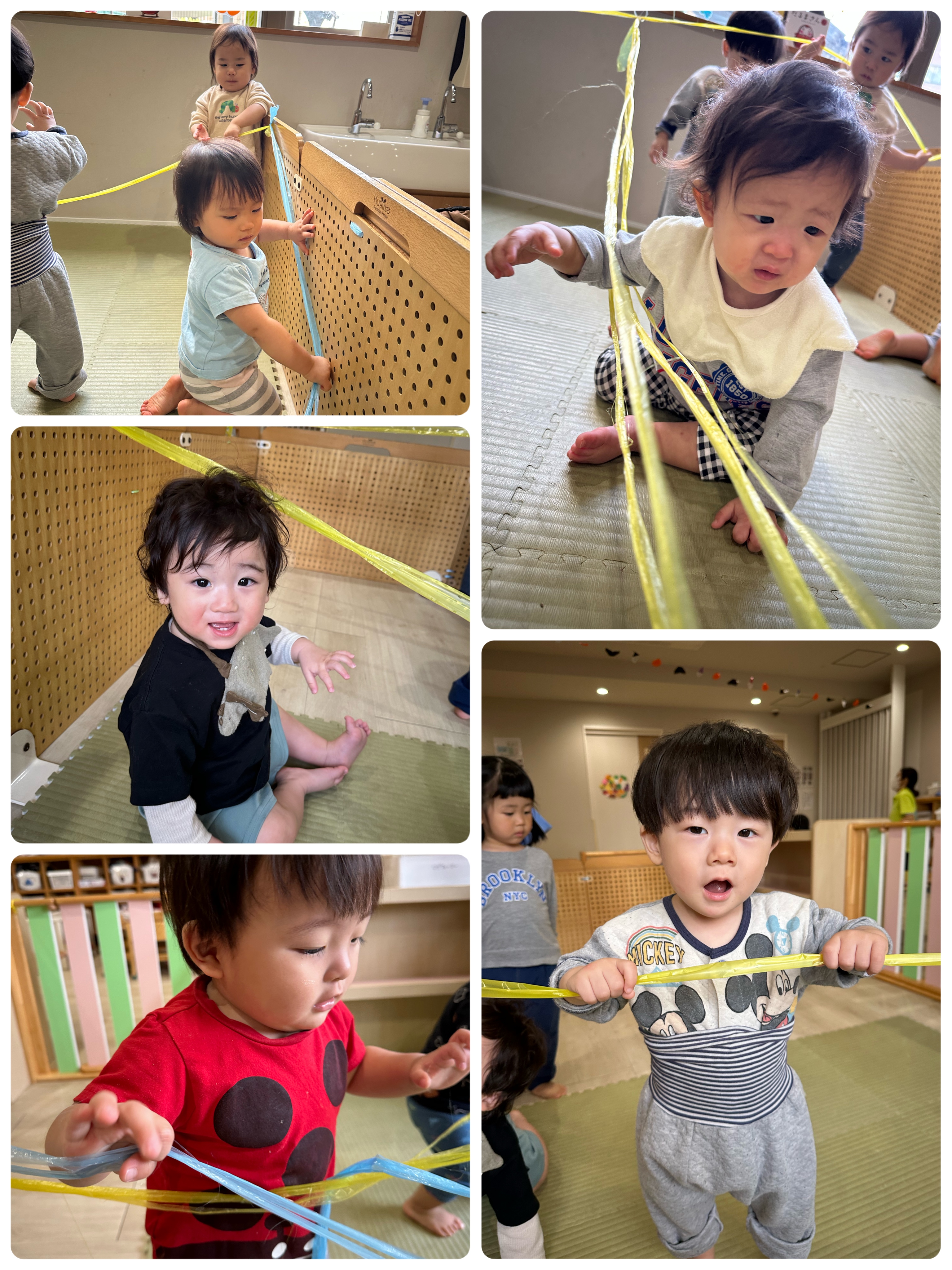 テープの音や感触を楽しみながら、またいだり、くぐったりしました☺💕