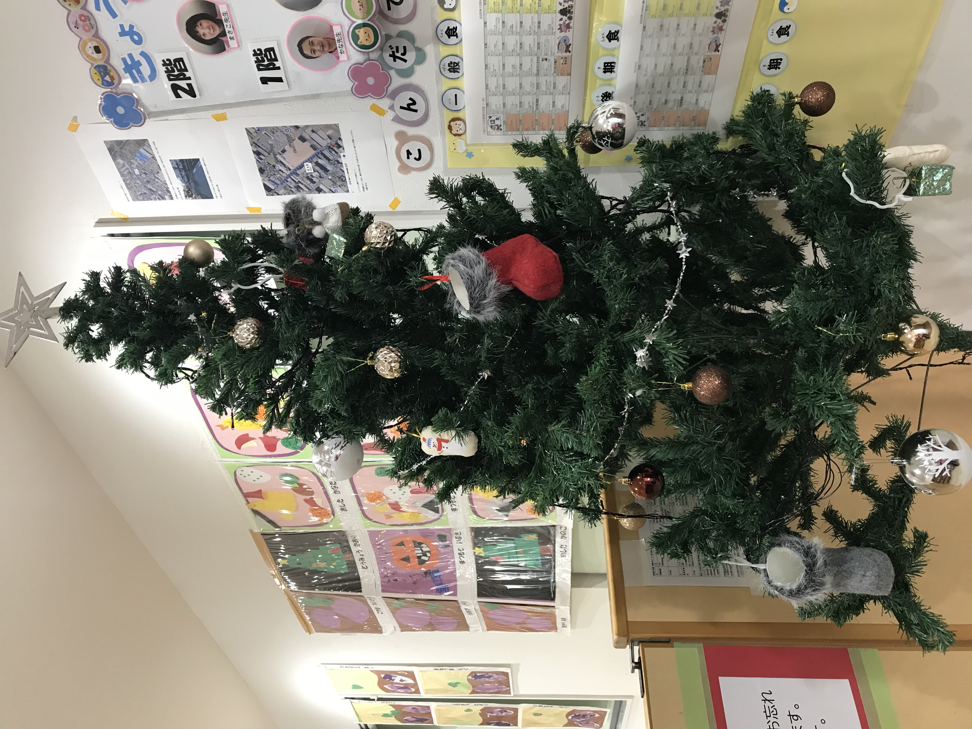 吉塚園の玄関にもクリスマスツリーを飾りました😊