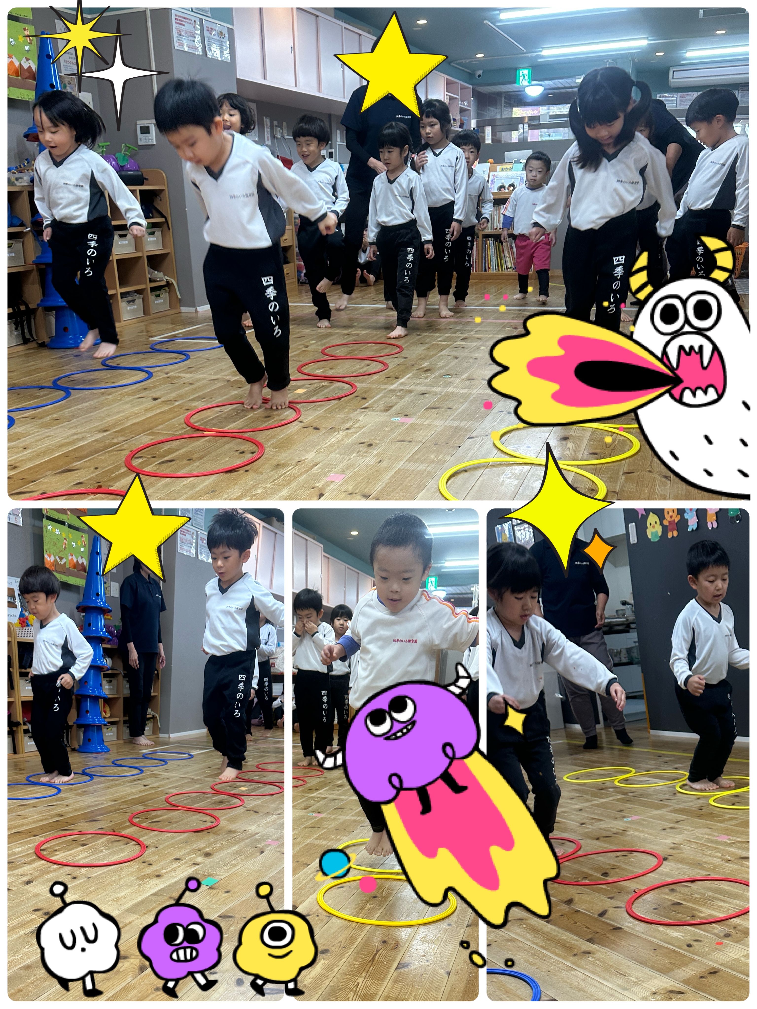 「小さいジャンプ難しくて通り越しちゃう!」と言いながら笑顔いっぱい体を動かしました🌟