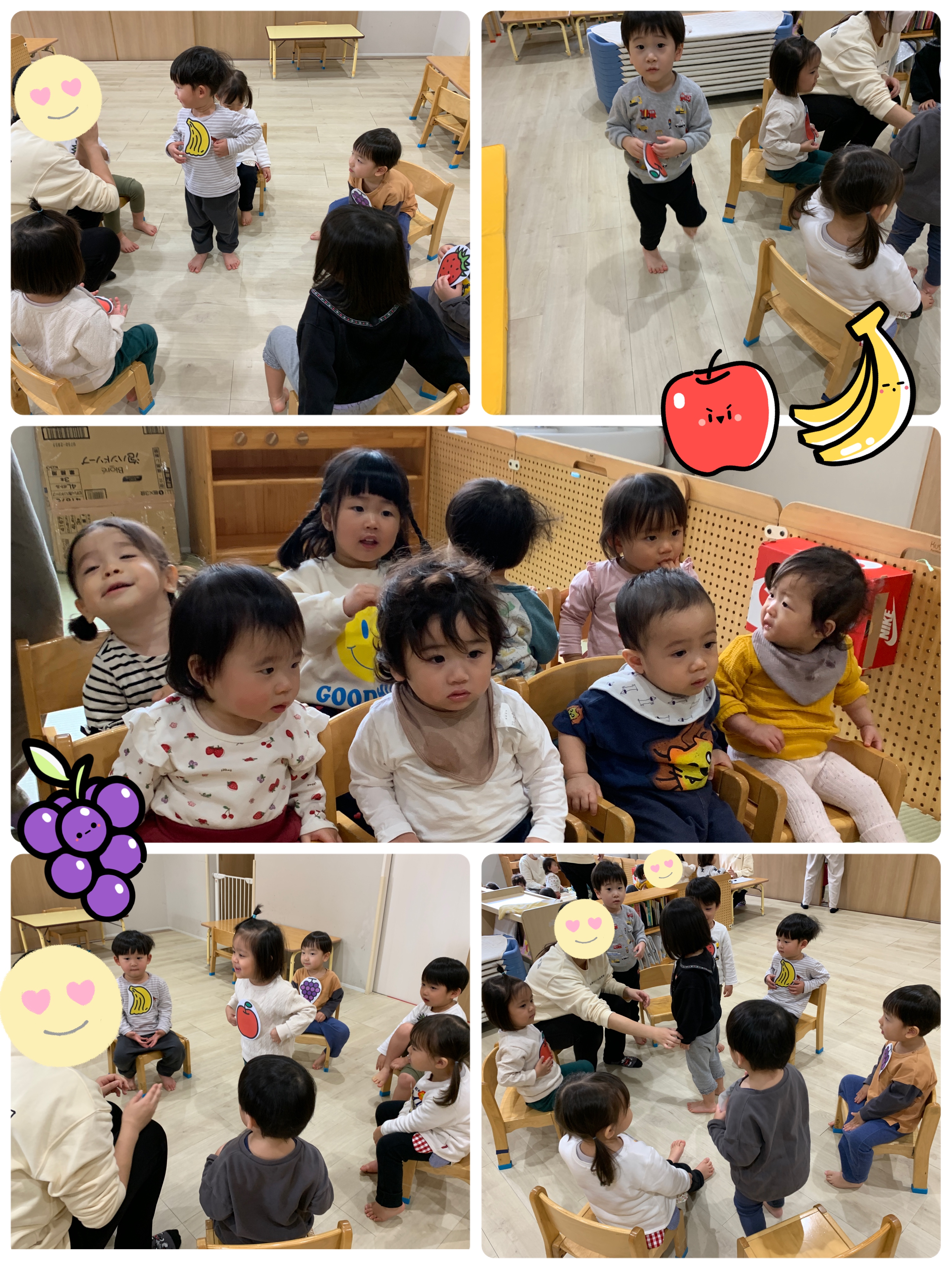 少しずつルールも分かるようになり、自分が持っているフルーツの名前が呼ばれると一生懸命動いていました🍇🍎