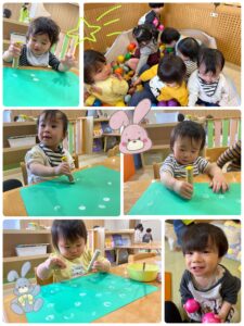 画用紙に模様がつくととっても嬉しそうでした☺💕