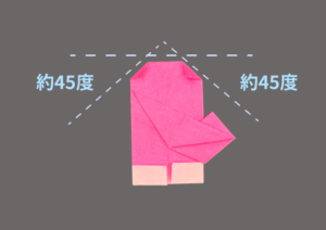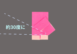 ⑧ ⑦をひっくり返して、右下1センチのところから画像のように左に向かって30度に折ります。