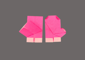 ⑭ 反対ミトンを作る場合は⑦まで同じに折り、⑧からの手順を線対象の状態で同じに作ります。