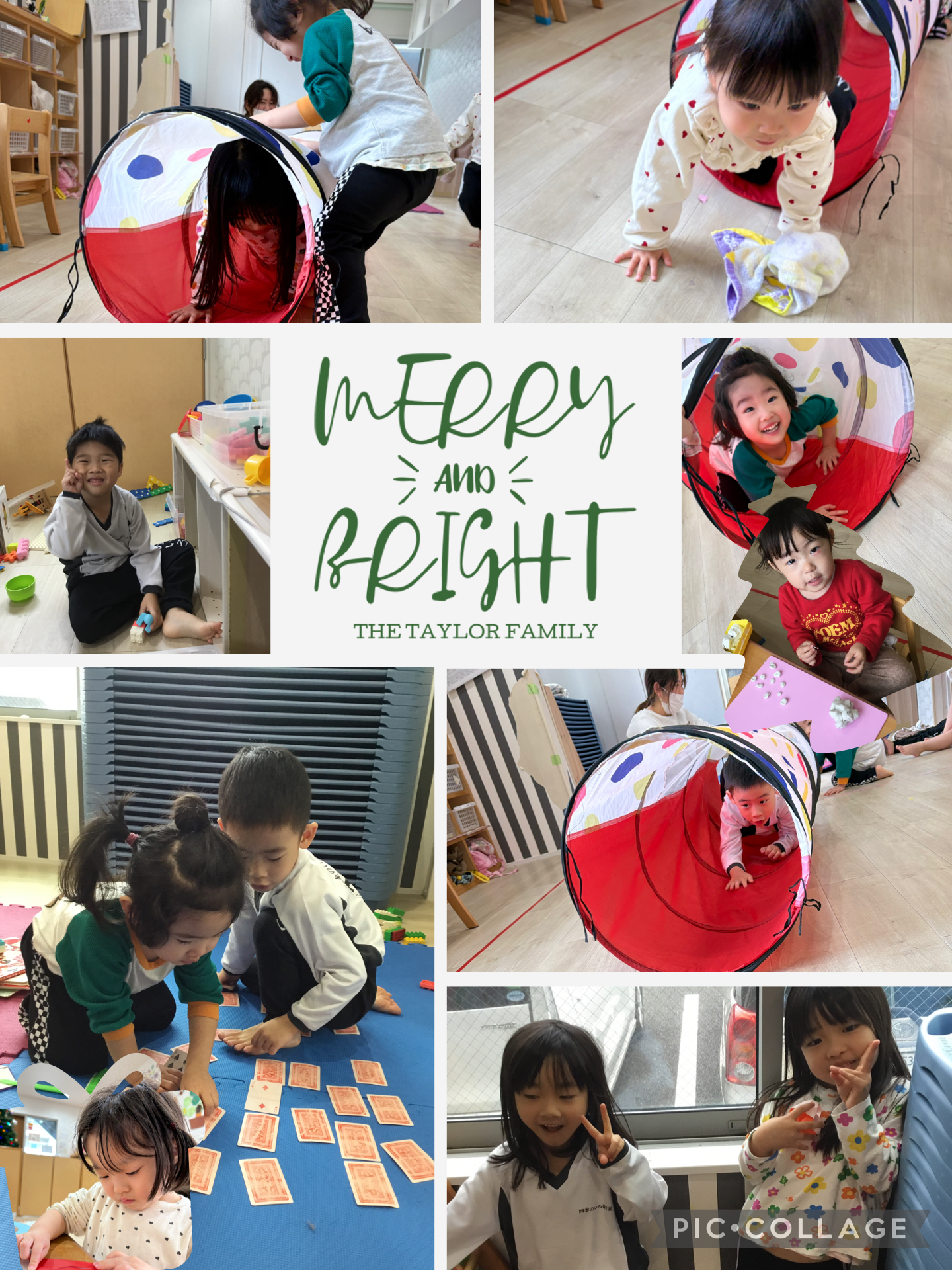 2〜5歳児のお友達はお部屋でトンネルくぐりやダンス、制作をしたりと色んな遊びをして過ごしましたよ🌺