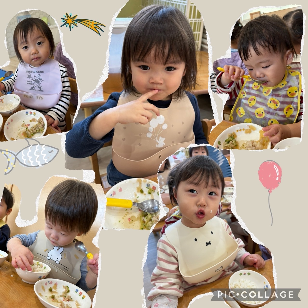 今日も元気なお友達!小さいお友達は、お外で沢山遊びました!身体を動かしお腹もぺこぺこ🍙