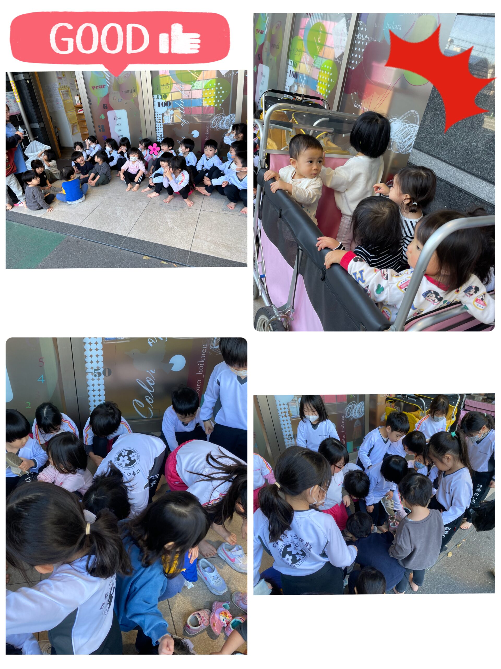 先生の目を見て以上児さんも未満児さんもお話をしっかり聞く事ができていましたよ。