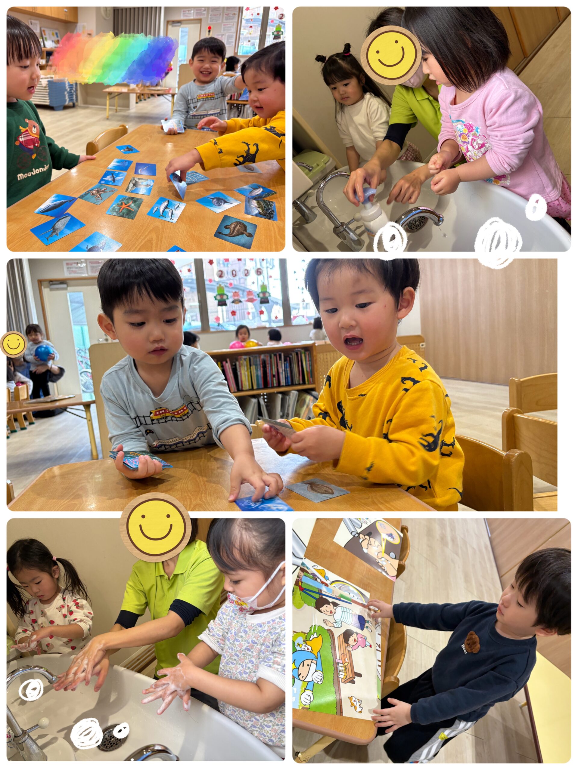 園でもしっかり手洗いを行い、元気に過ごしていきたいと思います☺その後行ったカード遊びでは、様々な生き物の名前を早く言い当てるゲームをしました🌟
