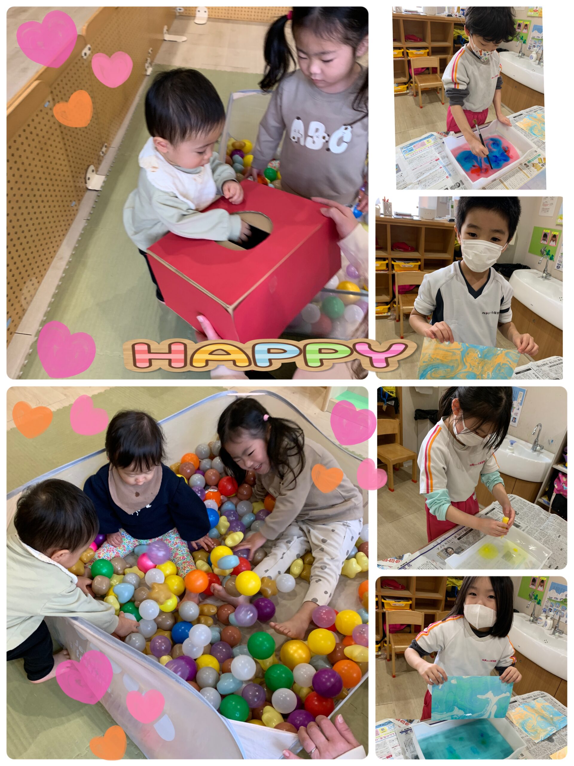 未満児さんはボールプールを楽しんでいましたよ。ボールシャワーをしたり、みんなで仲良くボールを投げたりとっても楽しそうでしたよ(๑>◡<๑)