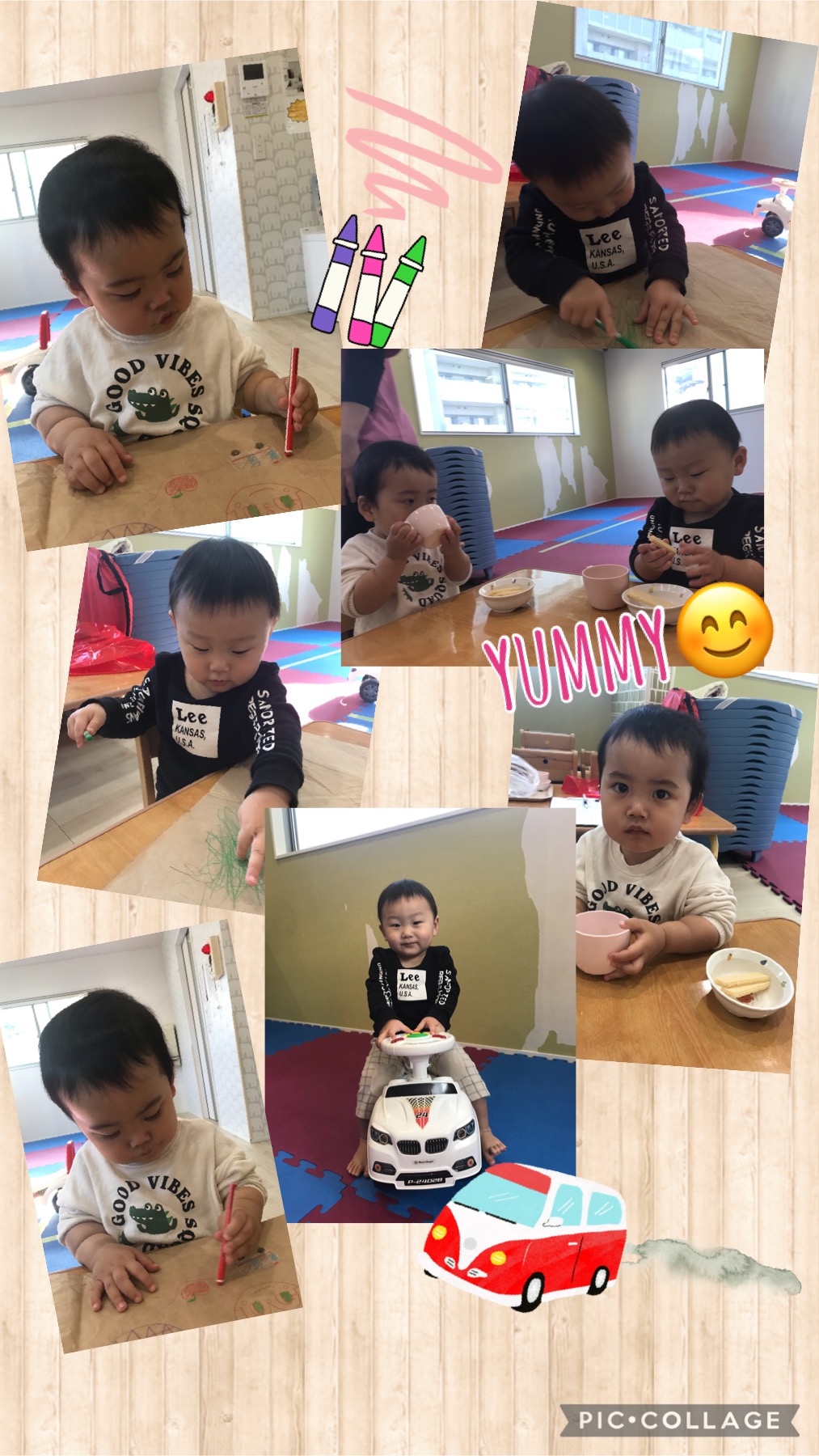 最初はひとりで遊んでいましたがお絵かきをしたりトンネルで遊んだりと途中からは2人で仲良くあそび、車を貸してあげたり後ろから押してあげたりと優しい姿も…💕