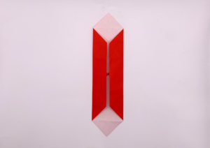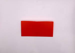 ① 折り紙を裏返しにして半分に折ります。