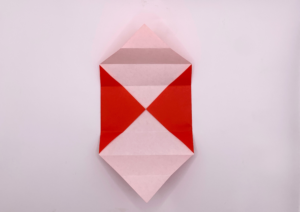 ⑥ ⑤を開いて上と下を中に折り込み箱の形にします。