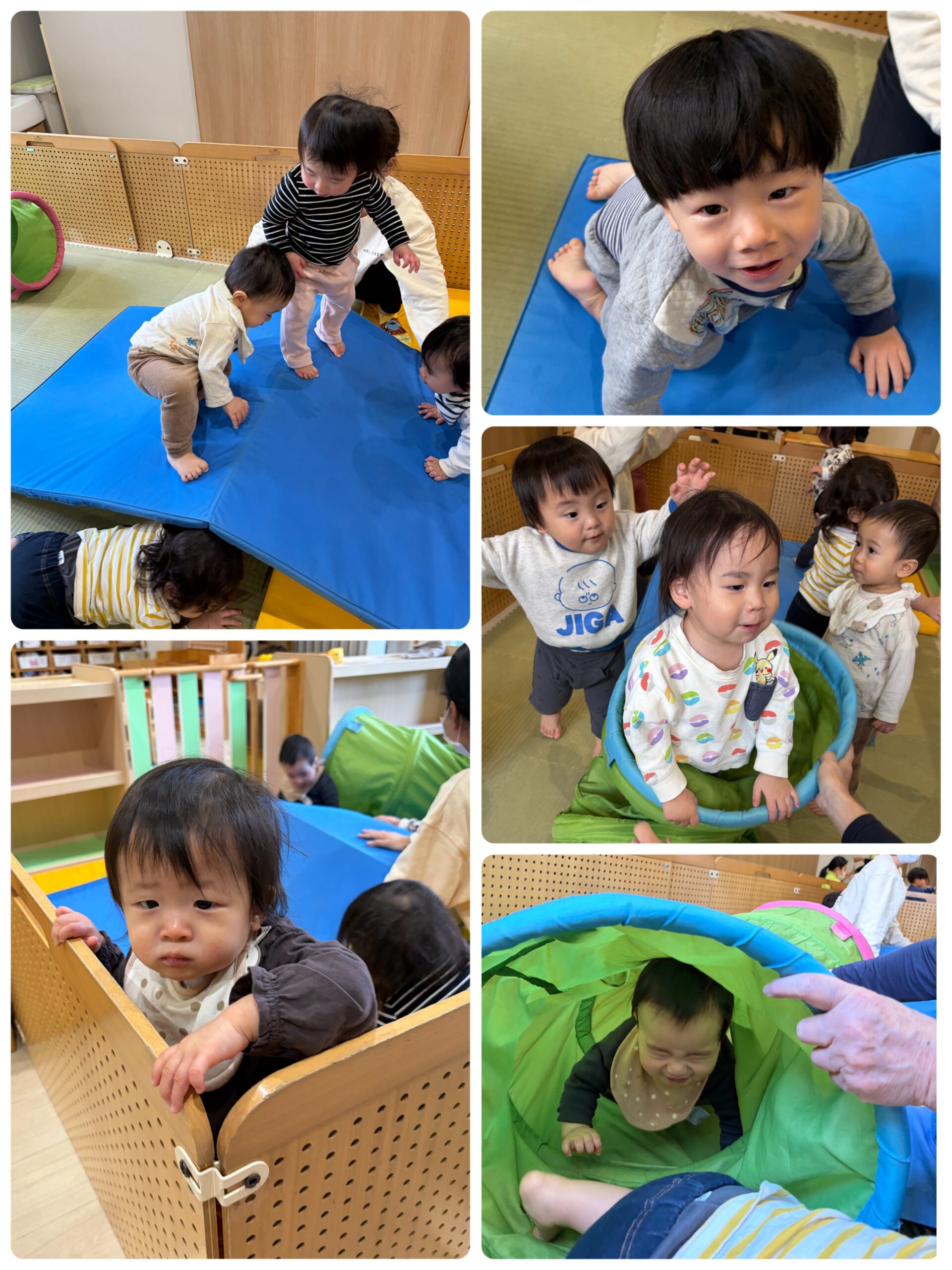 トンネルからひょっこり顔を出したり、マットと跳び箱を組み合わせた障害物で、バランスを取りながら登り降りを楽しみましたよ⭐️